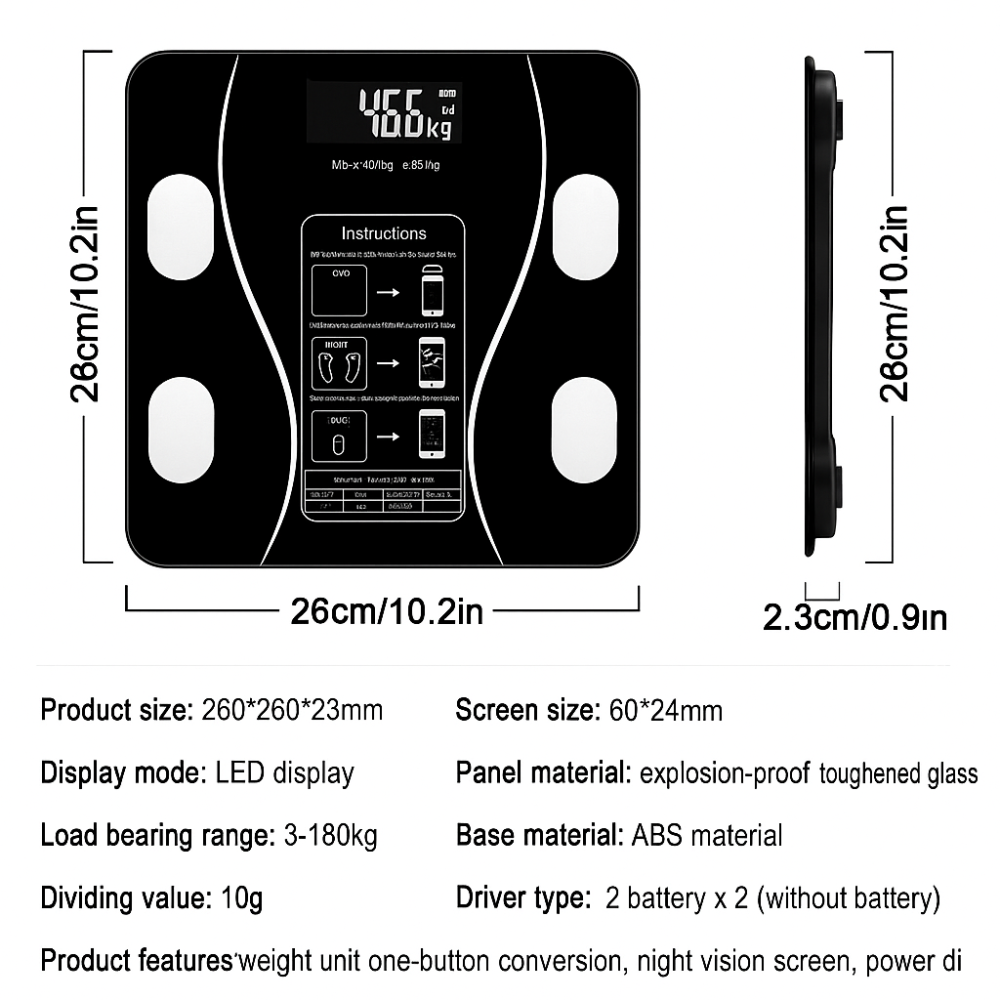 - بلوتوث متوافق مع جميع الأجهزة لربط الميزان بالتطبيق بسهولة